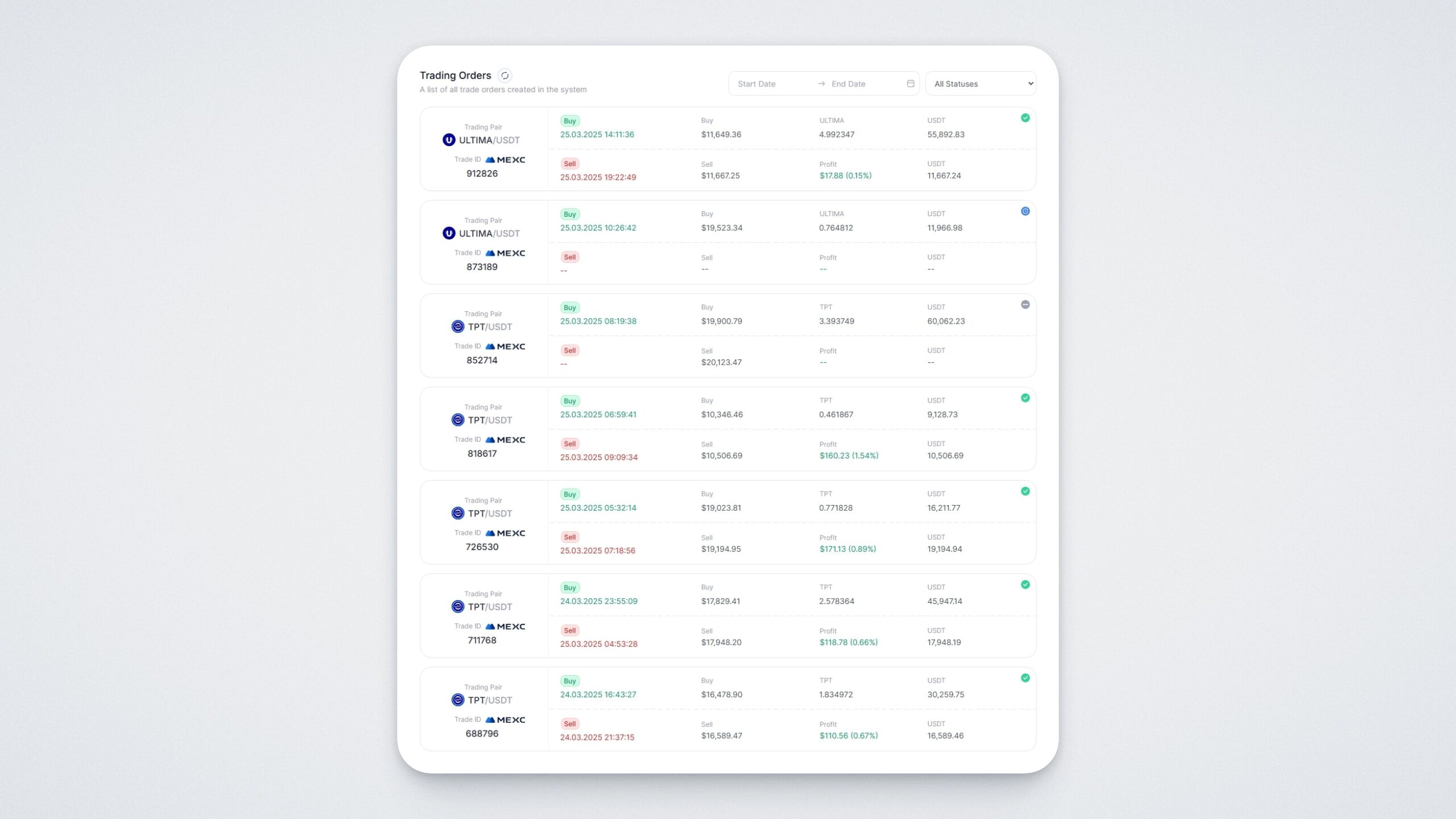 Уважаеми потребители! С радост ви представяме продукт от новата ера в екосистемата на Ultima — платформата Ultima Trading. На нея са достъпни автоматични търговски ботове, предназначени за спот търговия с двойката TPTU/USDT на различни криптовалутни борси. В тази инструкция ще ви обясним как работи търговският бот чрез пример.